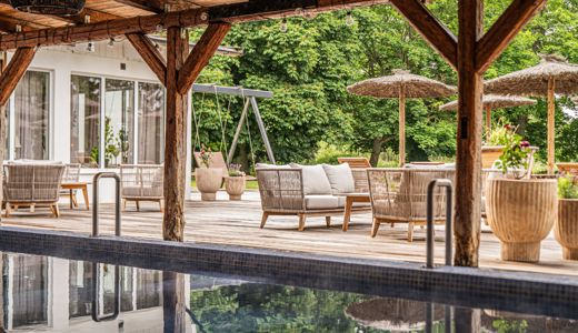 De 41 fyrstjärniga hotellrummen ligger i charmiga byggnader nära bana, restaurang och spa. Spaavdelningen bjuder på jacuzzi, ångbastu, varma källor, relaxytor och en uppvärmd utomhuspool – en rogivande miljö där gäster kan njuta i sin egen takt.